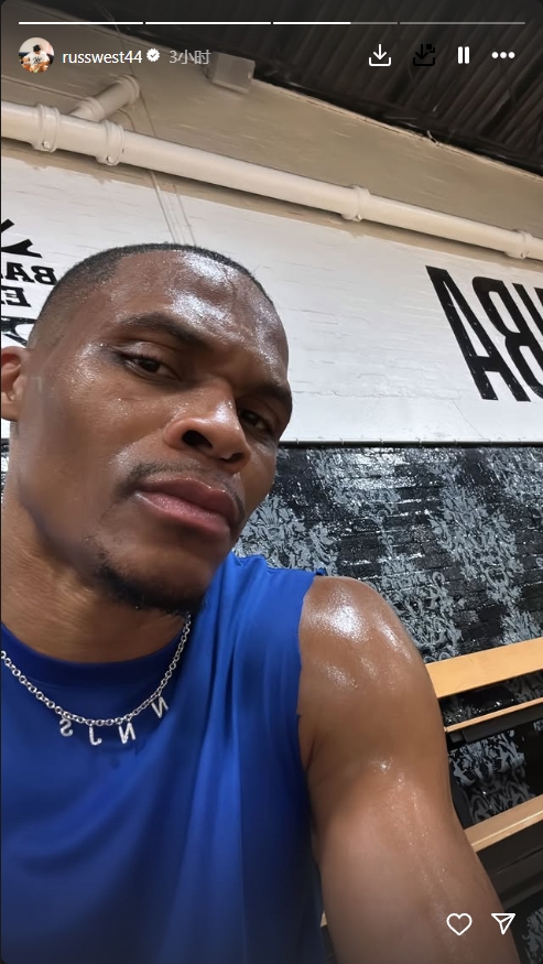 8月21日,NBA球星拉塞尔-威斯布鲁克通过个人社交媒体分享了一组训练照片。