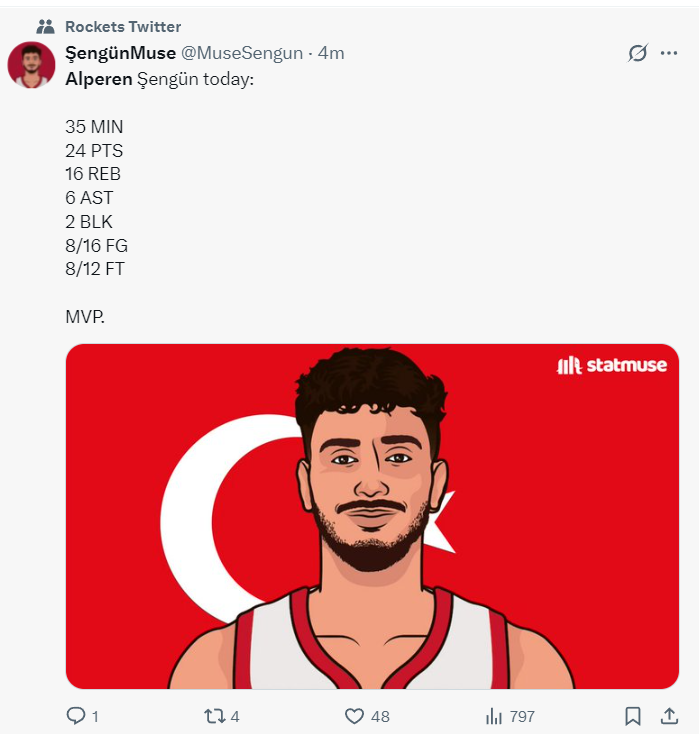 休媒:申京24+16+6+2帽,他已经连续六场比赛是单场最佳,为他欢呼吧!